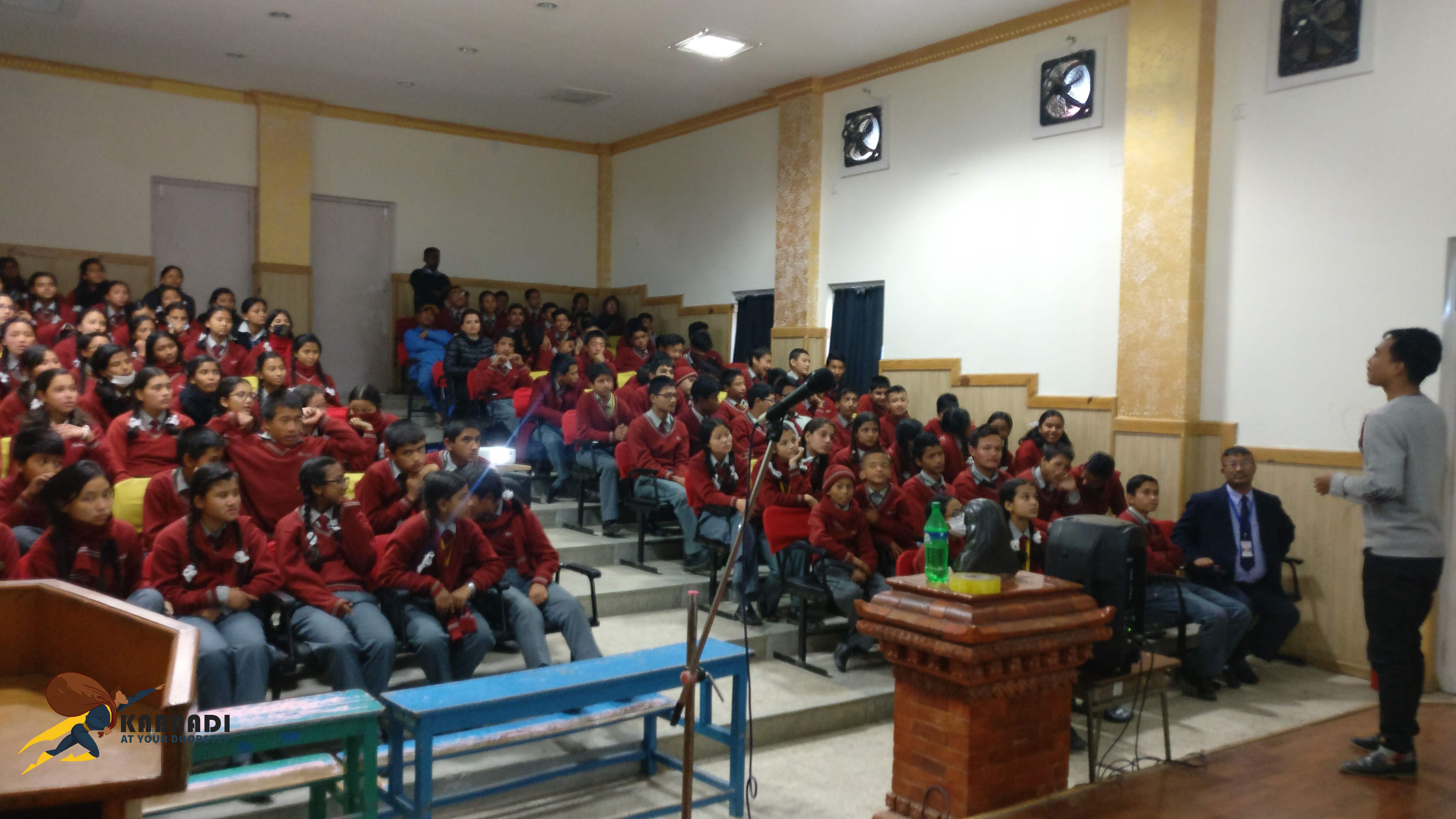 Rarahil Memorial School is one of the schools in Kirtipur where proper segregation of waste is practiced. Three different bins for plastic, paper and food waste have been kept in the school arena and the effort seems very productive.